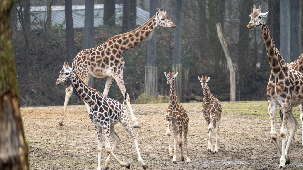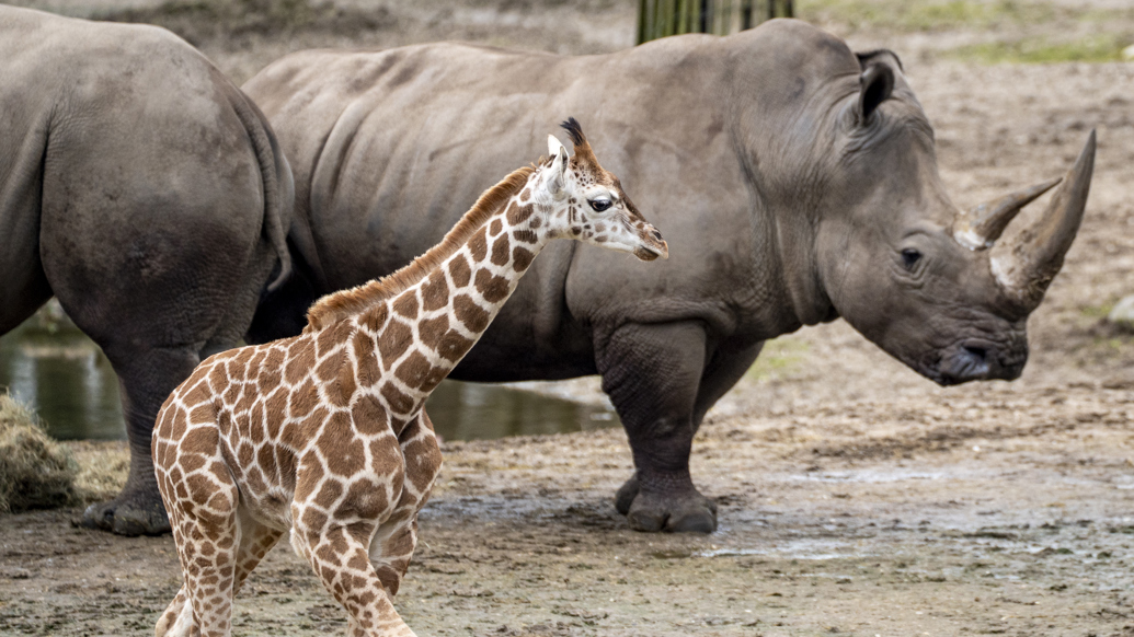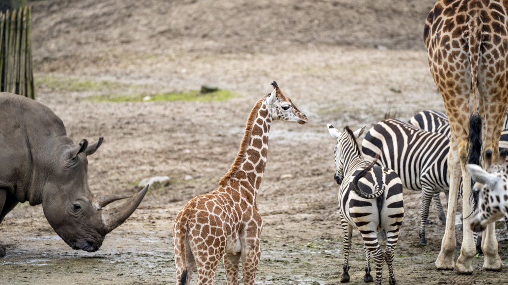 Am Freitag, dem 13. Februar 2026, begegnen zwei junge Giraffen zum ersten Mal den Zebras und Nashörnern auf der Savannenfläche des Königlichen Burgers’ Zoo. Neugeborene Giraffen verbringen die ersten Monate je nach Wetterlage noch im beheizten Stall oder in abgetrennten Gehegen hinter den Kulissen. Erst wenn sie fest genug auf den Beinen stehen, lernen sie die anderen Tiere kennen.