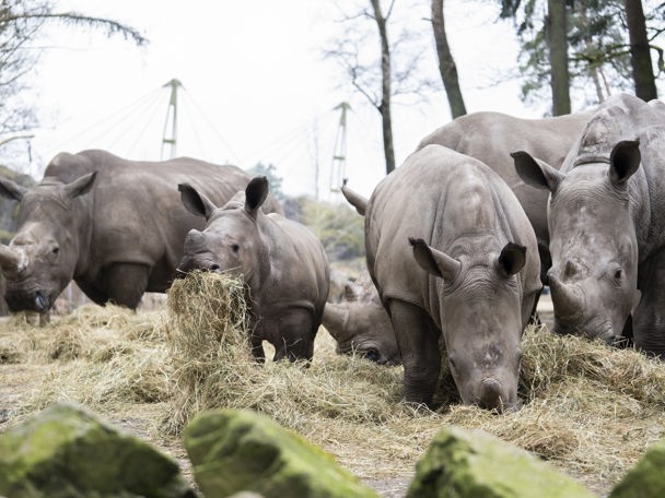 Wer auf einer Afrikareise in kurzer Zeit möglichst viele große Tiere sehen möchte, ist gut beraten, nicht in den Regenwald, sondern in die Savanne zu fahren! Ihr Besuch in Burgers’ Safari beginnt an den Beobachtungshütten, wo Sie durch große Fensterscheiben die Geparde und die Löwenfamilie betrachten können. An einer Wasserstelle, an der Sie anschließend vorbeigehen, stillen mit etwas Glück gerade die Breitmaulnashörner ihren Durst. Vor Ihren Augen entfaltet sich eine Savannenlandschaft, in der Gnus, Zebras, Wasserböcke, Pferdeböcke, Beisa-Oryx und Giraffen leben. Unweit der Wasserstelle befindet sich ein Schlammtümpel, den insbesondere die Nashörner im Sommer dankbar nutzen. Unsere Wasserböcke schwimmen gerne in einem Teich in der Mitte der Safari-Fläche.